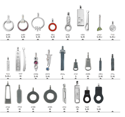 NOTA: S – PARA CINTAS DE 4 A 5MM; M – PARA CINTAS DE 6 A 7MM; L – PARA CINTAS DE 8 A 10MM; I – PARA CREMALLERAS INVISIBLES